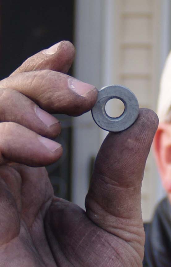 Removing the top nut. You can leave the rubber washer, and steel sleeve in place.